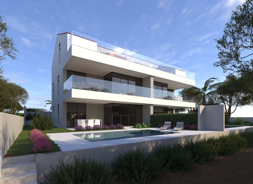 Novostavba s celkem pěti byty se nachází cca. 20 kilometrů od Novalje a cca. 27 kilometrů od trajektového přístavu v Zigljen. Plánované dokončení je červen 2023.