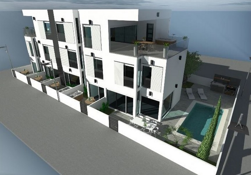Mezonetový byt (přízemí a 1. patro) DX1 - obytná plocha cca. 72 m² se dvěma ložnicemi, koupelnou, WC, obývacím pokojem s kuchyní a jídelním koutem. Volitelně možné: bazén, vířivka, bioklimatická pergola. 1 parkovací místo. Pořizovací cena: 409 000 EUR