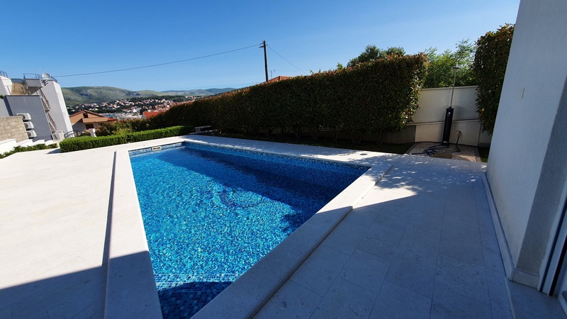 Tato nabídka je moderní vila se zajímavým designem s bazénem a výhledem na moře na ostrově Čiovo (s mostním spojením s pevninou) v Dalmácii.