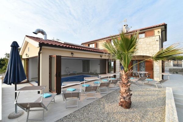 Středomořská kamenná vila s krytým bazénem v regionu Krk