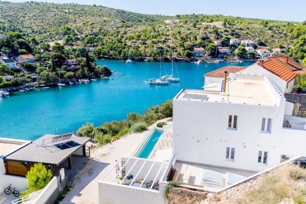 Tato nabídka je nově postavená vila s bazénem na panoramatickém místě na ostrově Brač v Dalmácii. Nemovitost se nachází v klidném a přírodním prostředí, obklopená středomořskou vegetací a nabízí krásný výhled na moře a záliv.