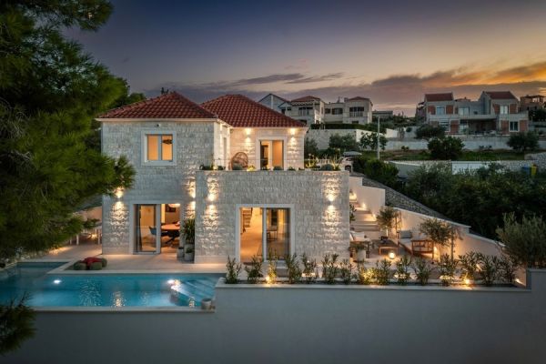 Vysoce kvalitní vila v dalmatském stylu s bazénem a výhledem na moře na Brači