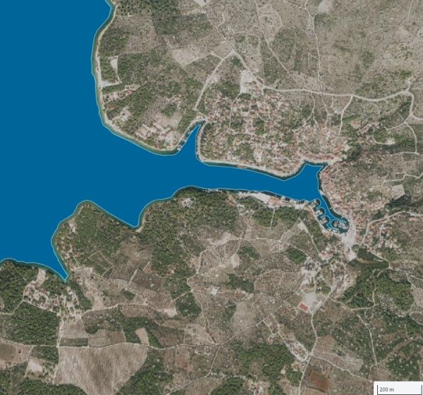 Ostrov Brač: Velký stavební pozemek ve 2. řadě přímo u přístavu/sportovního přístavu